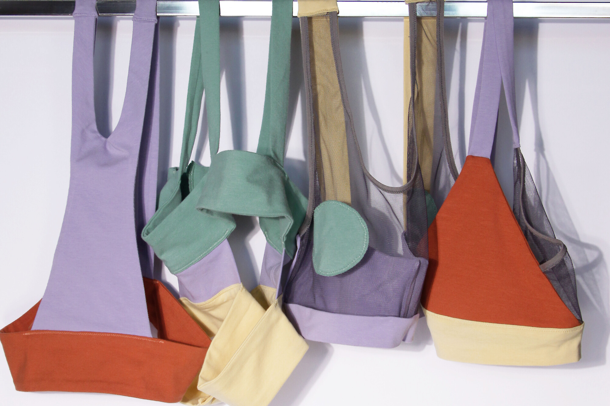In ihrem Masterstudium an der Folkwang Universität der Künste hat sich Elena Blazquez von Anfang an auf das Thema des BHs konzentriert. Sie untersucht dabei wieso ebendieses Kleidungsstück Teil einer patriarchalen Gesellschaft und der damit einhergehenden Ungleichbehandlung und Diskriminierung der Geschlechter ist. Mit kleinen gestalterischen Interventionen experimentiert Elena, wie das Ungleichgewicht zwischen weiblicher und männlicher Oberkörperfreiheit aufgebrochen werden kann. Angelehnt an die Vision des Designers Rudi Gernreich, der 1971 die Utopie aufstellte, dass in Zukunft Frauen Hosen tragen und Männer Röcke, deutet Elena den BH um. Aus einem der weiblichsten Kleidungsstücke wird so der Unisex-BH. Jeder Mensch kann frei entscheiden, ob die Brust verdeckt oder offen gezeigt werden soll. Die BH-Kollektion 2064 ist nonbinär, sensibel, sportlich und doch verspielt. Damit bricht sie mit der üblichen doch stereotypen geschlechtsneutralen Gestaltung. Elenas Arbeit zeigt exemplarisch wie vielfältig und produktiv im Masterstudium Industrial Design an der Folkwang Theorie und Praxis zusammengebracht werden.