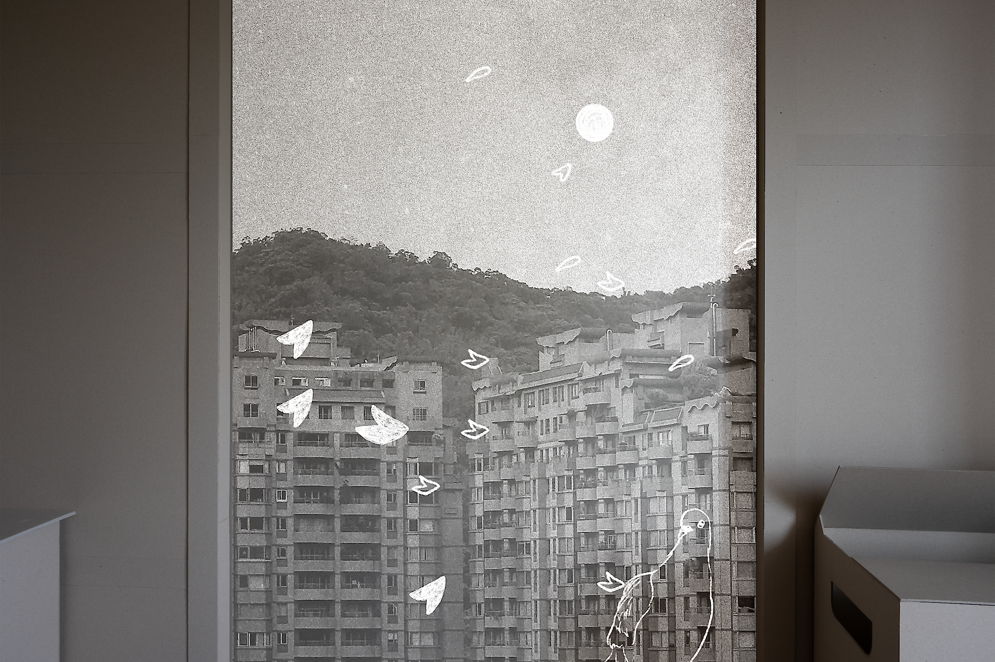 Ich bin kein Fisch, ich atme Luft ist eine immersive Installation, die Narrativen von Entfremdung atmosphärisch vermittelt. Sie umfasst einen eigenen Raum, einen Zwischenraum, dessen Zweck es ist, Entfremdung in sich zu tragen. Projektionen an den Wänden lassen Raum und Narrativ nahtlos ineinander übergehen.