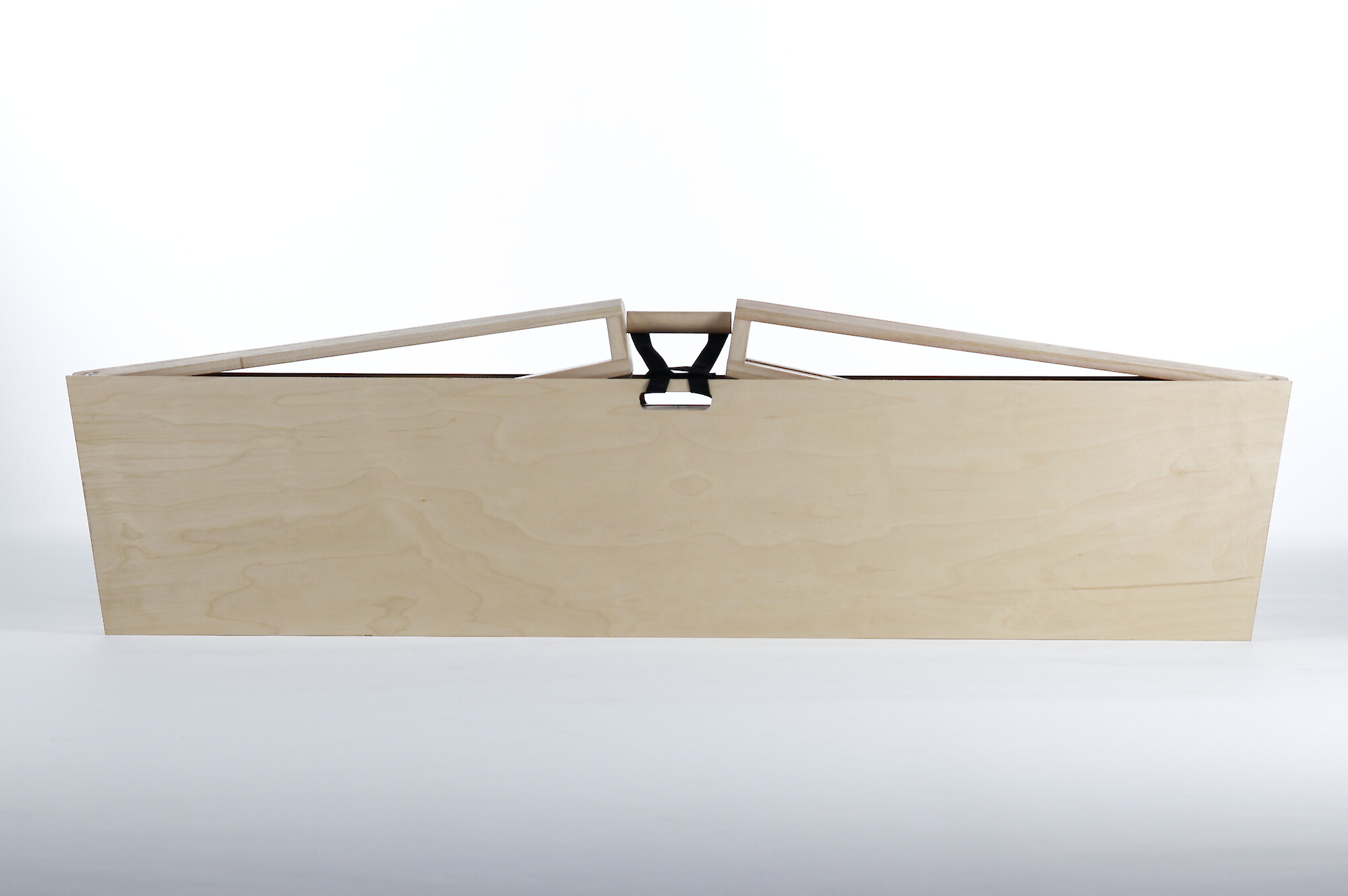 Die Grundkonstruktion des Tisches ist aus Paulowniaholz gefertigt, einem der leichtesten Hölzer, um das Gewicht möglichst niedrig zu halten. Die Tischplatte aus Multiplex bietet dabei gleichzeitig die nötige Stabilität. Mit diversen Scharnierkonstruktionen ist der Tisch so gestaltet, dass er von einer einzigen Person in kürzester Zeit auf- und zugefaltet werden kann. Der zusätzliche Griff, welcher im geschlossenen Zustand das einhändige Tragen des Tisches ermöglicht, wird im geöffneten Zustand unter die Tischplatte gesteckt, um die Beine zu verriegeln.
