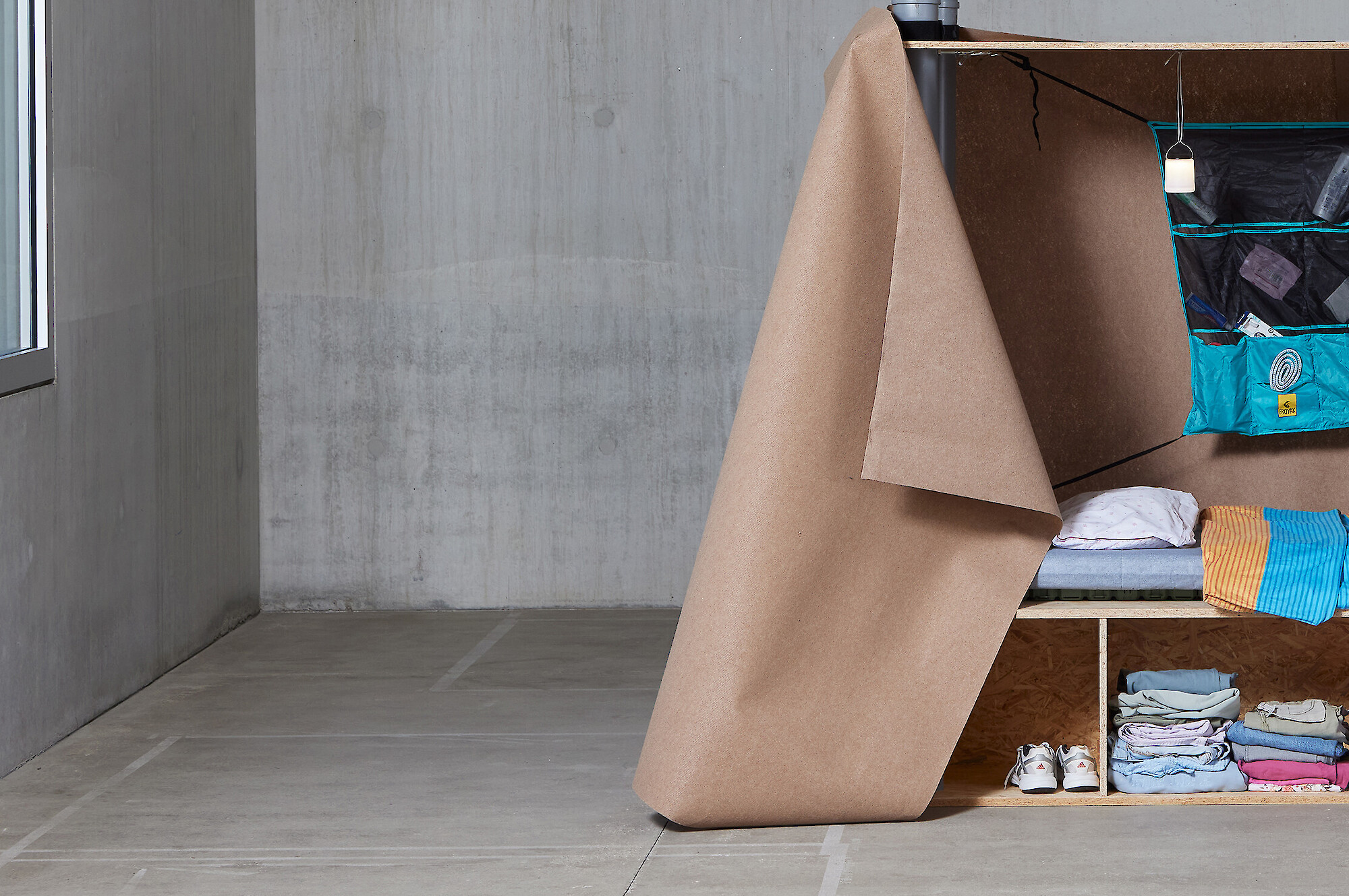 Der Mangel an Intimität in Massenunterkünften für Geflüchtete ist mit hoher psychischer Belastung verbunden und zwingt die Bewohner dazu, sich provisorische Rückzugsräume zu schaffen. Das „SHELTER KIT“ versteht sich als ein möglicher Ansatz zur Verbesserung der Wohnsituation in Erstaufnahmeeinrichtungen und anderen Sammelunterkünften.Bei der Gestaltung wollte ich mich auf geringe Kapazitäten beschränken, um nicht die Grenzen dessen, sondern die vielen Möglichkeiten aufzuzeigen.