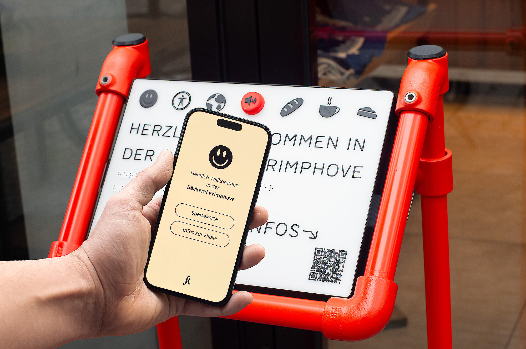 Das Ergebnis umfasst zudem eine Willkommens-Station, ein digitales Anwendungskonzept für eine visuelle und auditive Informationsvermittlung, ein analoges Narrativ mit Anekdoten und Informationen sowie eine neue Beschilderung der Auslage – alle gemeinsam mit blinden und sehbehinderten Co-Designer*innen entwickelt und auf unterschiedliche Bedürfnisse und Fähigkeiten abgestimmt. Die Zusammenarbeit mit dem Verein und einer lokalen Bäckerei ermöglicht die Eröffnung realer Experimentierräume für mehr gesellschaftliche Teilhabe.